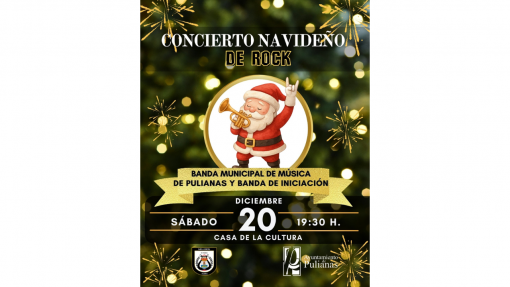 CONCIERTO NAVIDEÑO DE ROCK DE LA BANDA MUNICIPAL DE MÚSICA DE PULIANAS Este sábado 20 de diciembre, la Banda Municipal de Música de Pulianas presenta su Concierto de Navidad con …