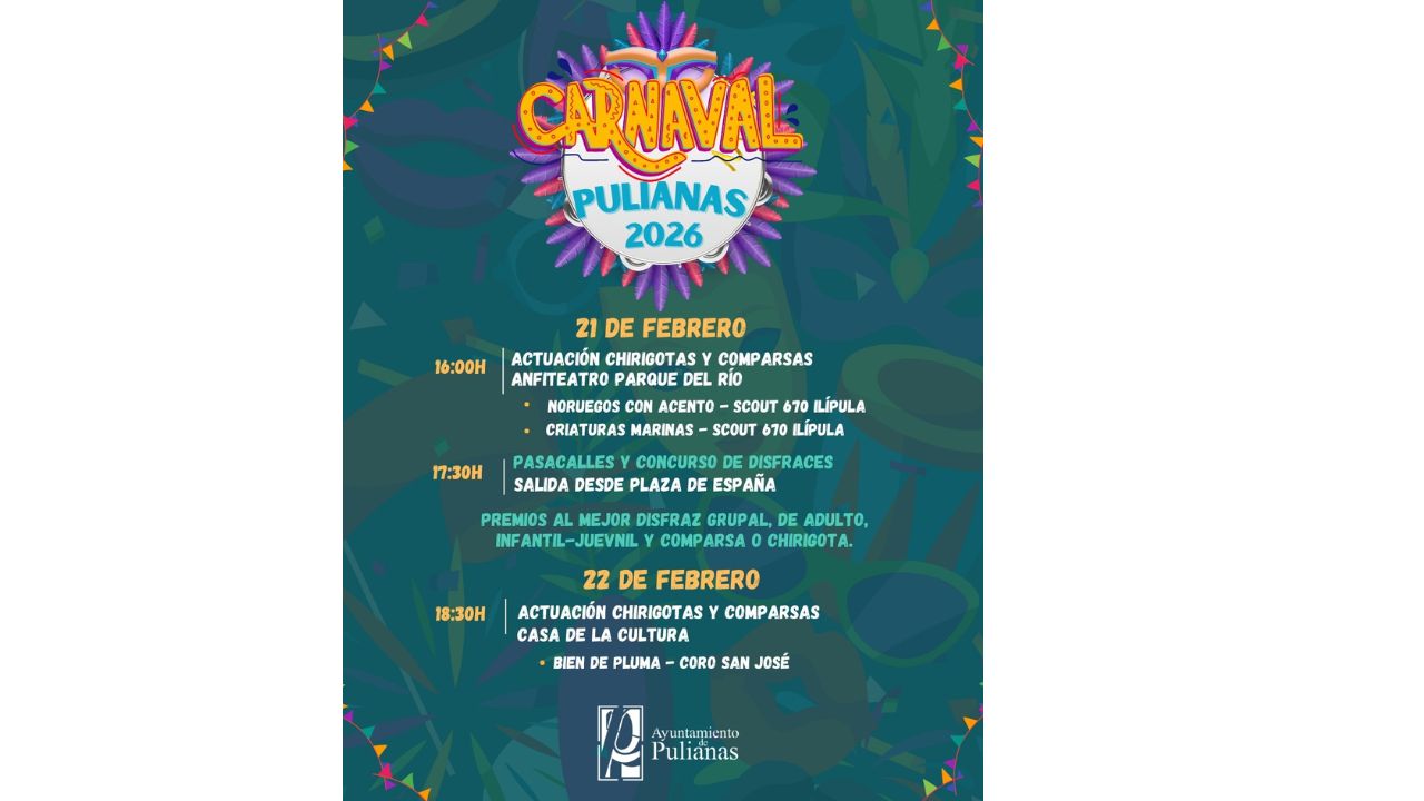 Este fin de semana, Pulianas se llena de color, humor y ritmo para celebrar una de las fiestas más esperadas del año: el Carnaval. Dos días de actividades para disfrutar en la calle, compartir en familia y mantener viva una tradición que cada año reúne a vecinos y vecinas de todas las edades.