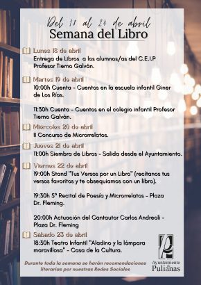 Con motivo del Día Internacional del Libro el próximo 23 de abril, hemos preparado una semana llena de actividades para celebrarlo. 📜🎉 ✅ Cuenta-cuentos. ✅ Concurso de microrrelatos. ✅ Recital de poesía. ✅ Siembra de ...