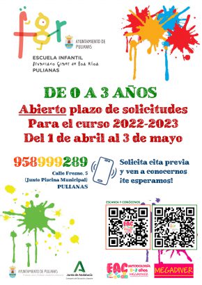 PERIODO DE ADMISIÓN CURSO 22-23 ESCUELA INFANTIL DE PULIANAS «FRANCISCO GINER DE LOS RÍOS»
