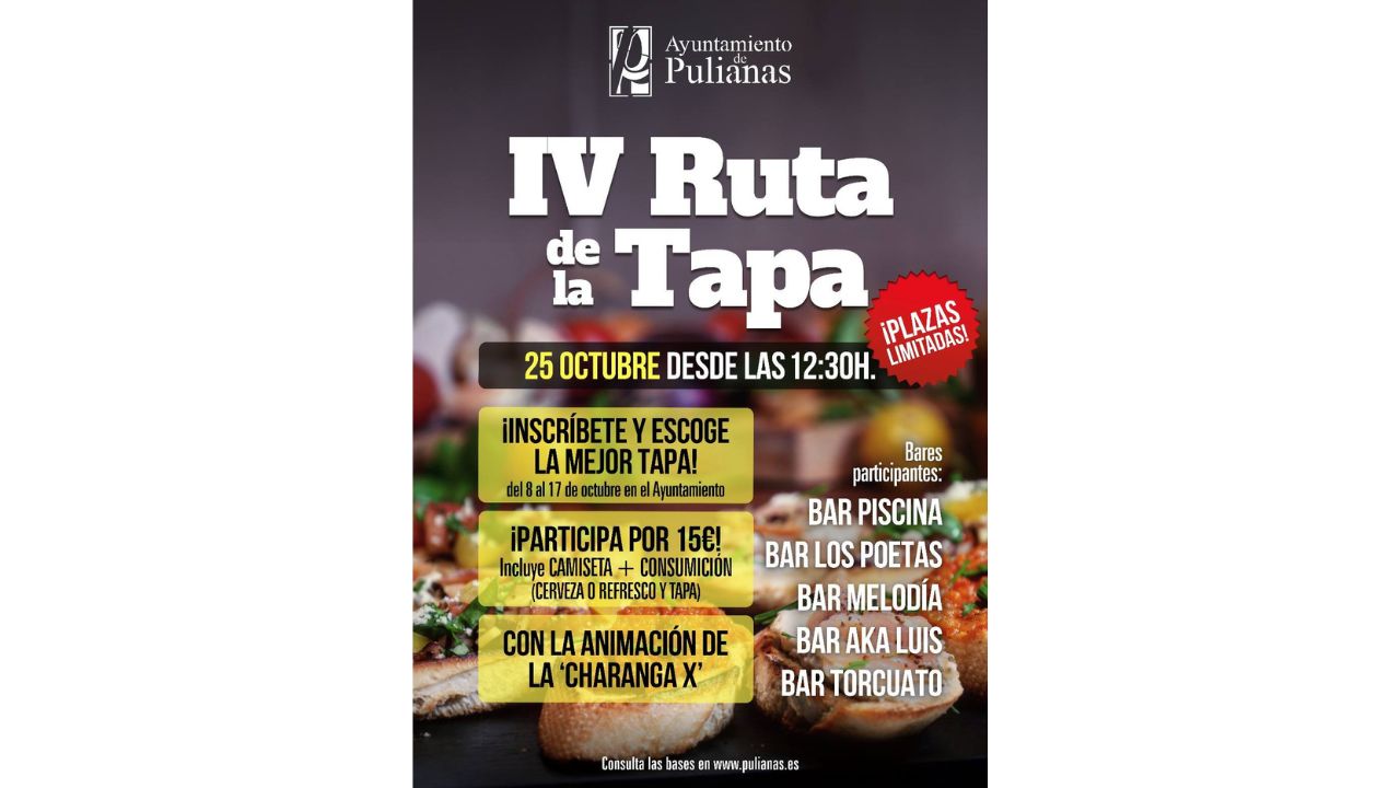 Pulianas vuelve a celebrar uno de sus eventos más esperados: la Ruta de la Tapa, que este año alcanza su cuarta edición. La cita será el 25 de octubre de 2025, una jornada pensada para disfrutar de la gastronomía local, el buen ambiente y la convivencia entre vecinos y visitantes.