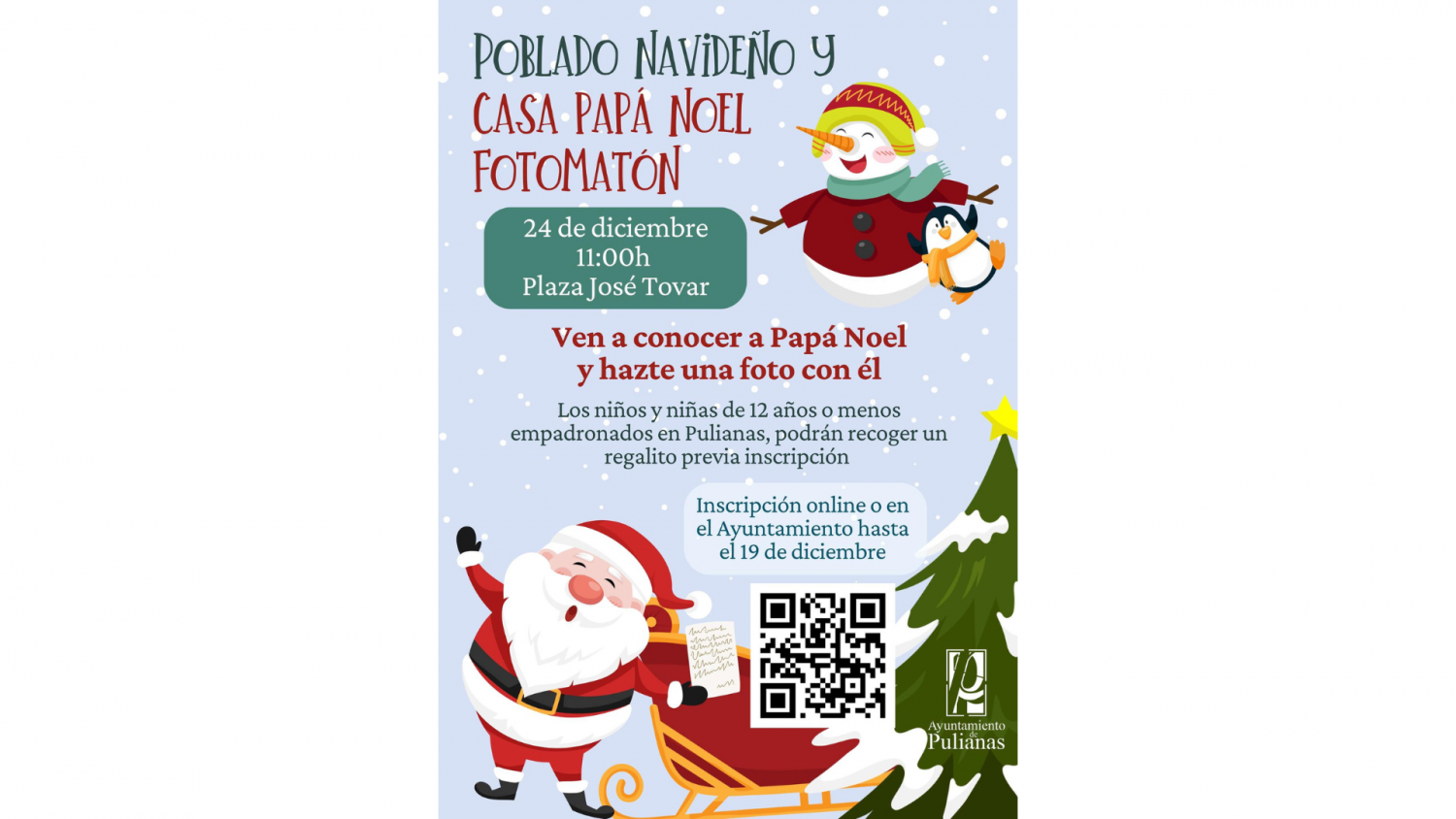 Papá Noel llega a Pulianas el 24 de diciembre, a las 11:00 h, en la Plaza José Tovar. Una mañana para disfrutar del ambiente navideño y llevarse una foto de recuerdo con él.