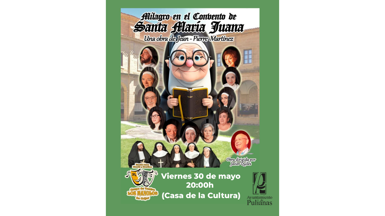 Este viernes 30 de mayo, no te pierdas «El Milagro en el Convento de Santa María Juana», una comedia llena de humor y sorpresas, del grupo de teatro «Los Manolos» de Gójar.